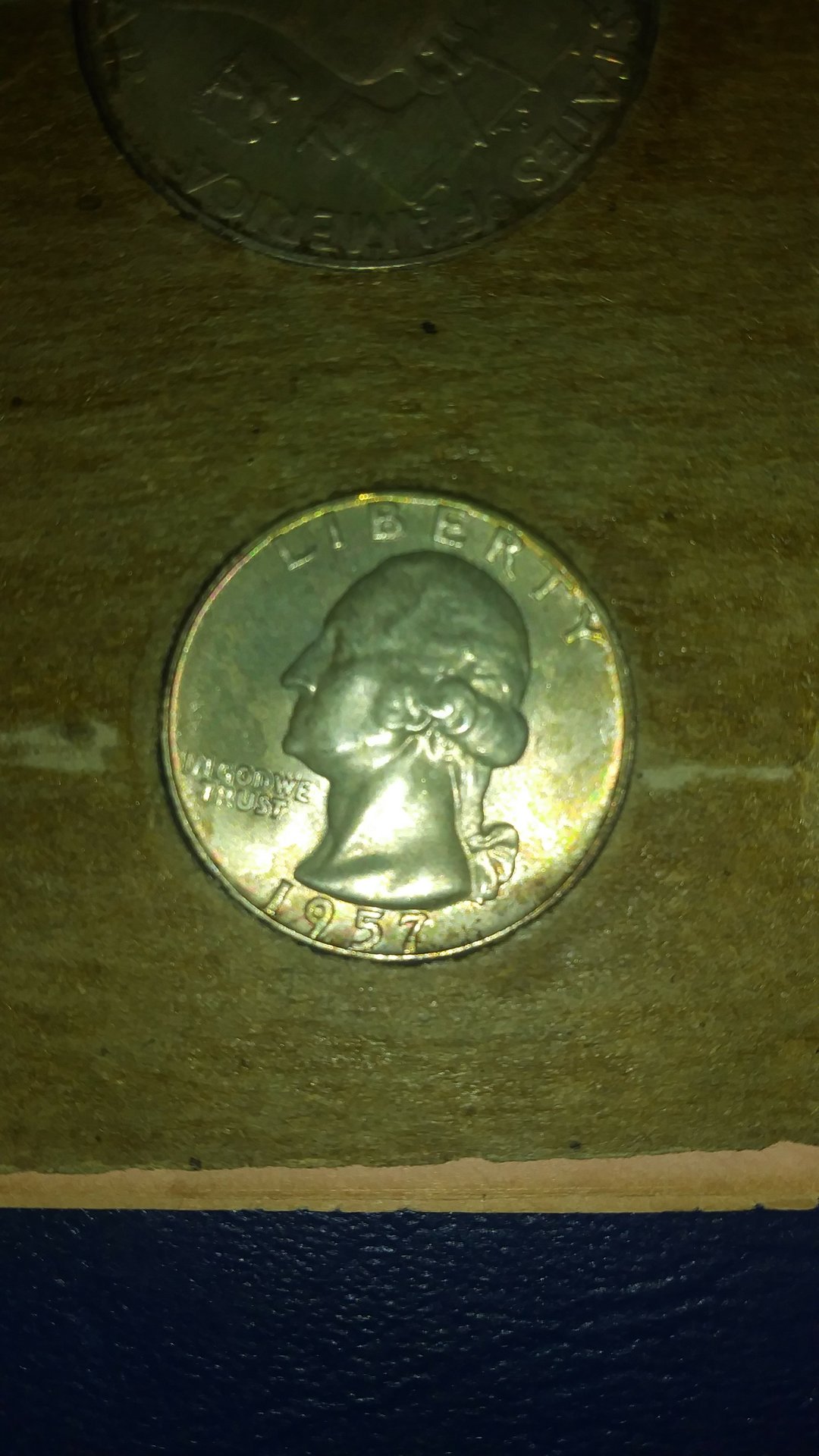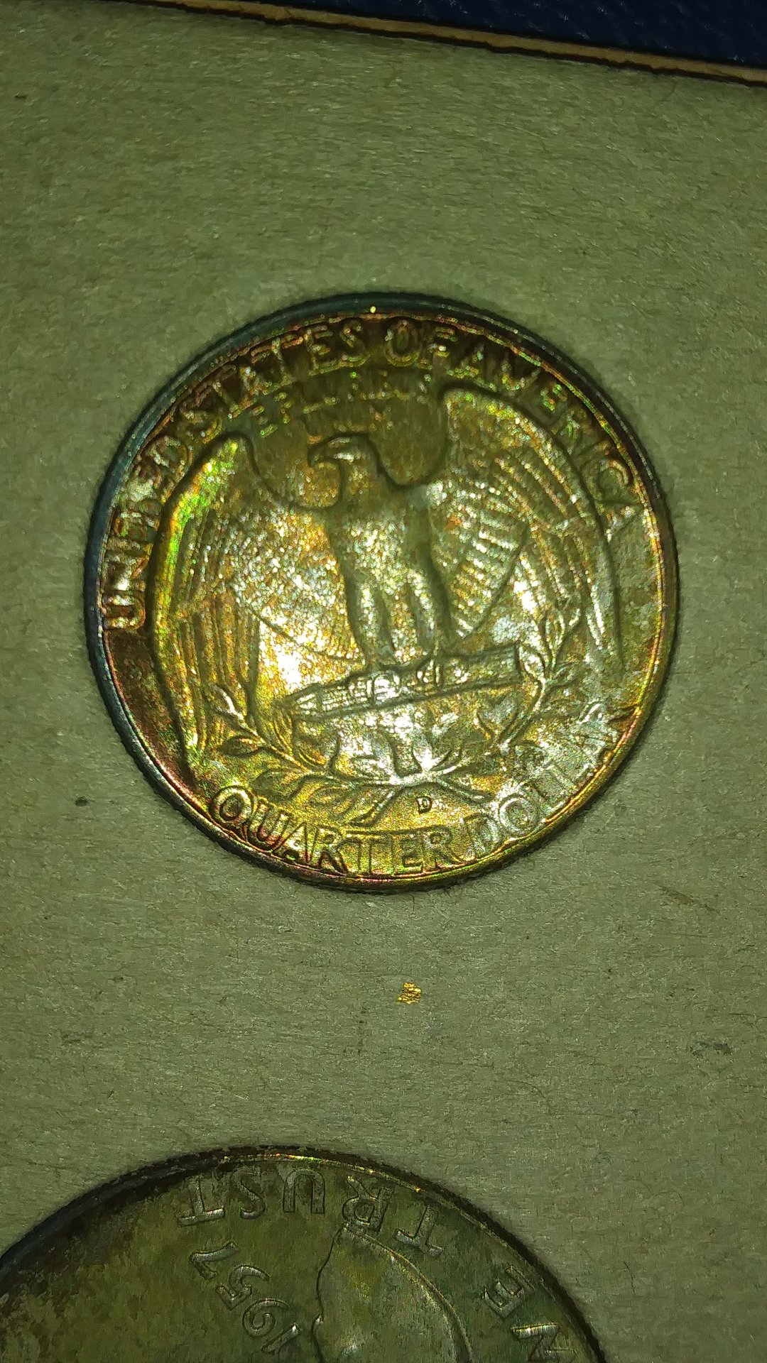 It is so frustrating trying to get accurate and informative photographs of many of these occurances that can clearlt be seen through a loop with coin in hand. Im litterally building a pile of coin strangeness here that I want to post but just HATE trying to get a useful image. Im finally giving in and buying a coin microscope. Its the only way!!! Lol... So that evil DD imposter MD ya think, huh? Lol....I had the same thought when I first came across this, but dismissed it because A) wexler listed a DDD B) the 2nd denver quarter in the set is the same C) id just never seen MD before that had this appearance D) in hand it dosent look as machine doubleyish...lol Taking the pic like I did with the glare was the only way I could get it to show well at all on my garbage cel phone...BUT!!!! It very well may be just that. These things get a lil tricky from time to time...either way, thank yall for your input and ill revisit this another day when I get a better photo setup. Thanks again!!!