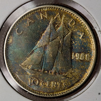 I've got a '64 Canadian dime that probably has the same colorful toning as that last coin in your pics.