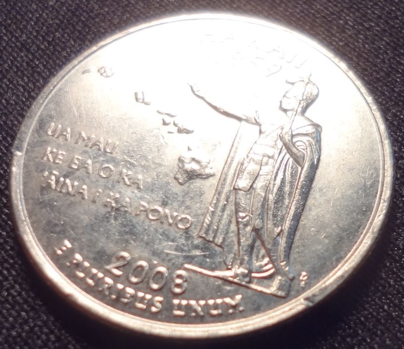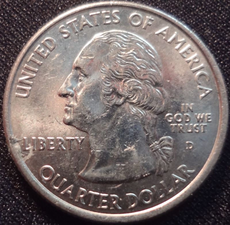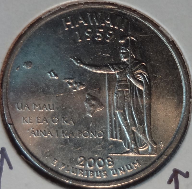 I remember picking this coin out of circulation for the strange characteristics the rim on the reverse has. It appears as though slightly over half of the rim was cut off and the remains of a sharp valley separate the two portions of the rim. There is a definite decrease in elevation, so it couldn't have been a couple of dings. I really can't think of anything that would justify this happening in the mint, but even under close examination, it doesn't appear to have been squeezed or cut outside of the mint. The obverse rim is perfectly normal and even throughout. The lower part of the rim extends from 8 o'clock to 4 o'clock, and the raised/normal looking rim is at the bottom of the reverse. The lower part looks very flat in contrast to the more rounded raised part. Thoughts?