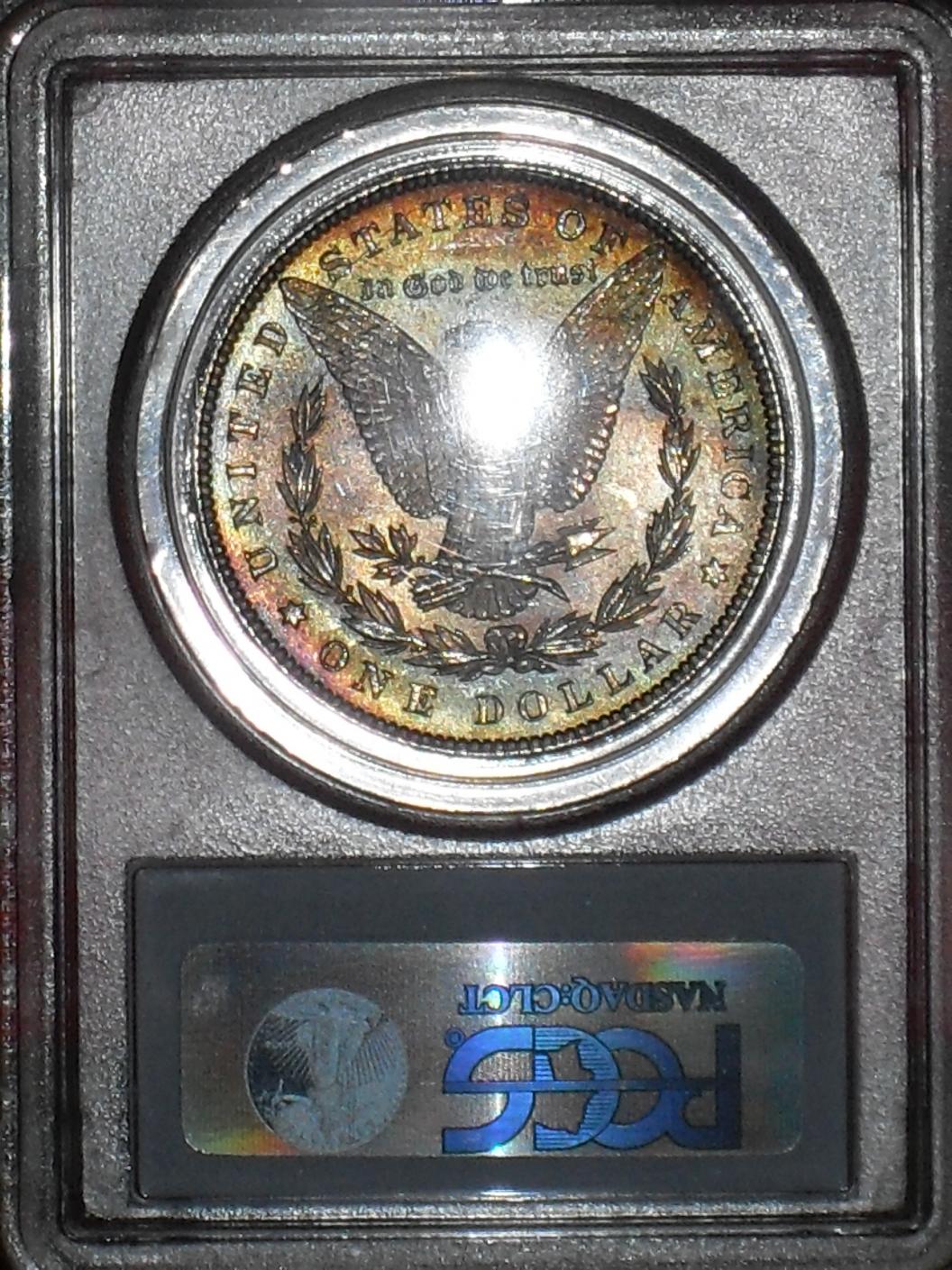 I have some slabbed coins I would like to sell. If you don't like my prices, send me an offer. PM me for more pictures of specific coins. I take payment by Paypal gift or personal check. If you buy and are not satisfied, send it back. Shipping will be USPS Flat Rate box. I added $5 to each coin to include shipping, if you buy multiple coins we will work out a lower price. 1. ANACS(Old holder) - 1971 D Eisenhower - MS64 - $15 2. ANACS(Old holder) - 1923 Peace - MS63 - $55 3. ANACS - 1892 Indian Head Cent - MS64 BRN - $150 Pretty Blue/Purple toning on Obv and Rev 4. ANACS - 1887 Morgan(Alligator Eye) - MS61 - $55 5. ANACS - 1884 O Morgan - MS61 - $70 Blue/Gold rim toning on Obv, Light Purple toning on Rev. 6. NGC - 1950 D Franklin - MS64 FBL - $70 Brown toning on Obv and Rev. 7. NGC - 1881 Morgan - MS62 - $80 Light rim toning on Obv and Rev. 8. NGC - 1885 Morgan - MS63 - $80 Dark rainbow toning in front of face on Obv, Golden tone on Rev. 9. NGC - 1923 Peace - MS62 - $60 10. NGC - 1882 CC Morgan - MS63 - $280 This coin is BEAUTIFUL, NGC dropped the ball on this grade. It should be at least Proof-like. 11. PCGS(Rattler) - 1881 S Morgan - MS63 - $90 Light purple toning on Obv, faint purple toning on Rev. 12. PCGS - 1885 Morgan - MS62 - $105 Blue/Gold toning through date, Gorgeous Rainbow toning on Rev. 13. PCGS(OGH) - 1887 Morgan - MS63 - $80 14. PCGS - 1879 S Morgan - MS62 - $60 Some dark toning spots on Obv and Rev. 15. PCGS - 1885 O Morgan - MS64 - $105 Blue/Purple/Gold toning behind Lady Liberty.