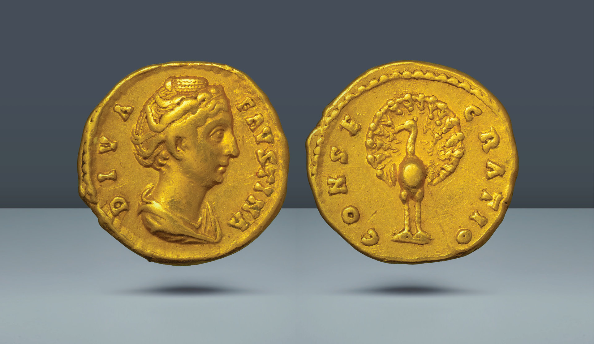 As a symbol of immortality, the peacock typically appears on consecration issues for Roman empresses. These were issued for the deified Faustina II.
