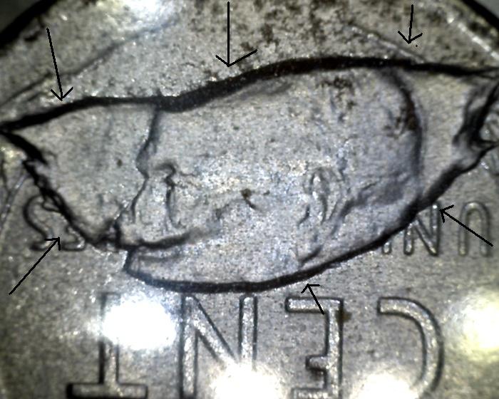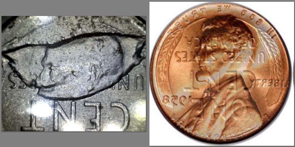 Look at the top of the head, you can see where the rest of the head ( glue ) broke off of this coin ..