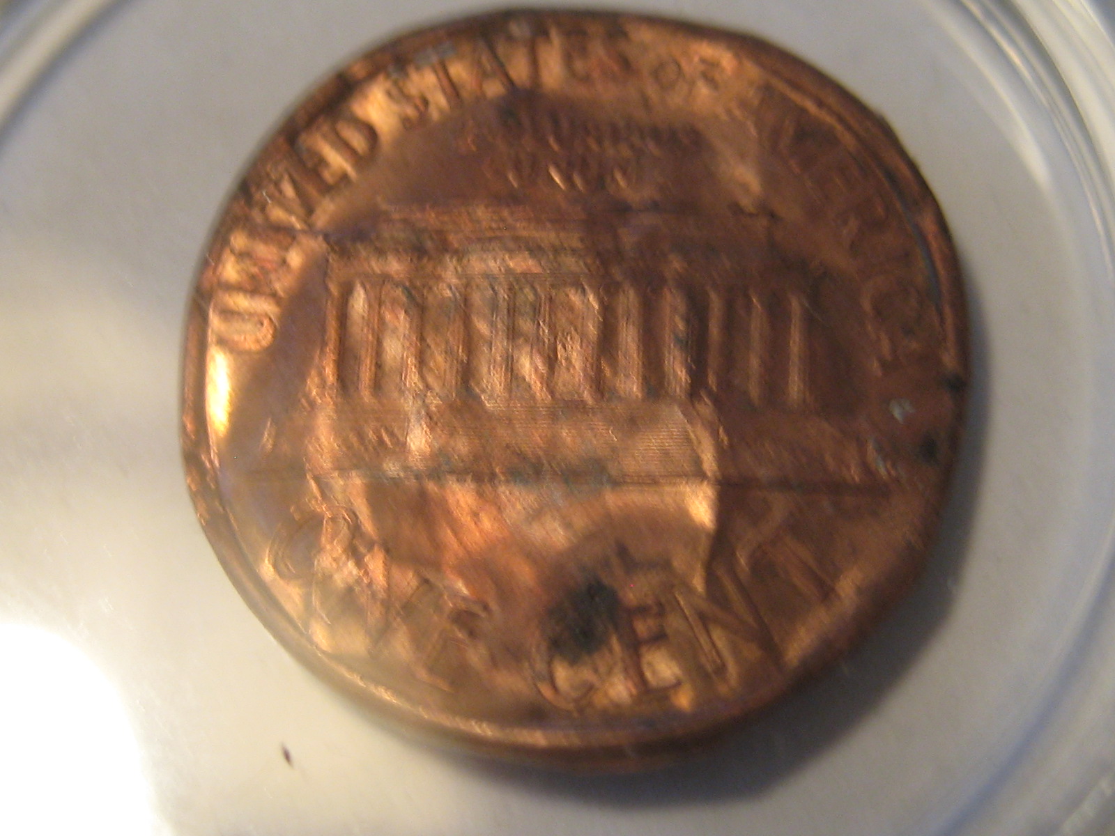Looks like the cladding/foil from one of the pennies slipped off.