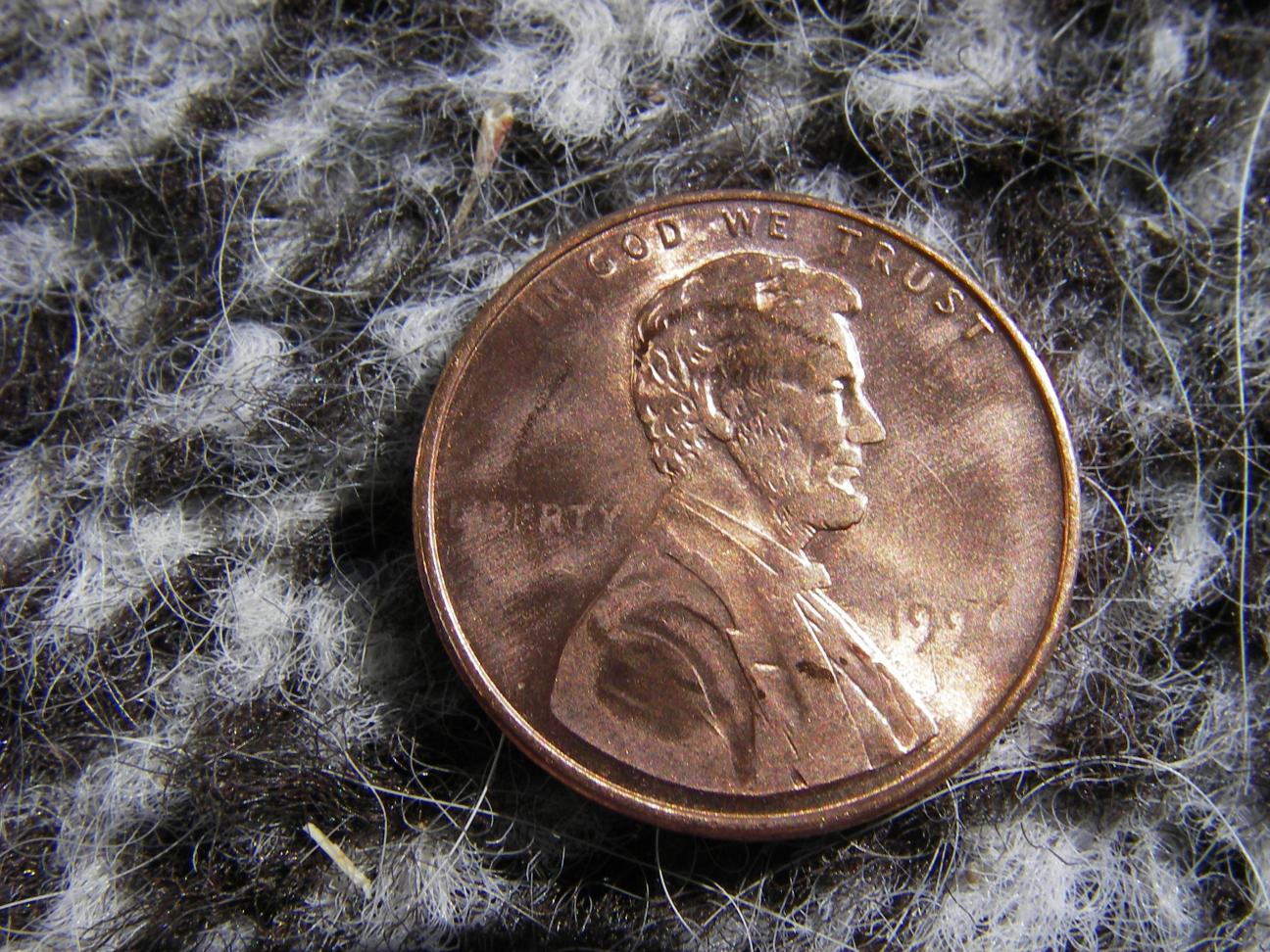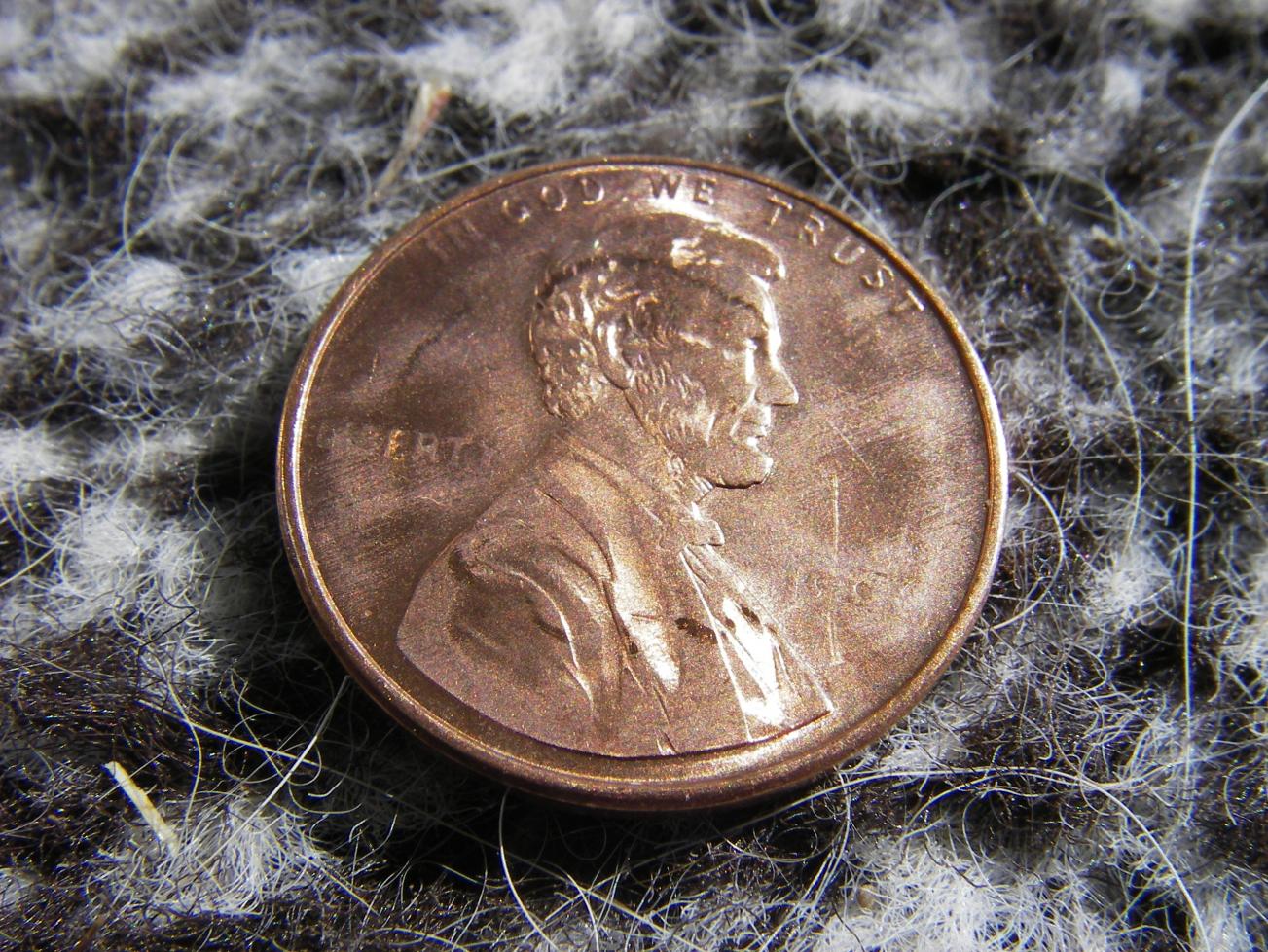 I open the roll this afternoon and start going through the pennies one at a time with my magnifier to sort them, wheat, copper, post 1982. I hit the one shown. I had to do a lot of playing with light angles to make Liberty and the 199x show up at all in the photo. They are very weak. Note also the weakness extends across Lincoln's coat and tie. The penny reverse seems normal and sharp. Even with a 16x magnifier we could probably debate all day as to whether or not the final digit is a 6, a 7 or an 8. What strikes me is this is a plated zinc penny, but the plating is still there which to me means this is not the result of a post mint grinding (as I would suspect with a pre 1982 penny). So I am thinking it is an error coin of some kind. My speculation would be something interfered with the strike. Spend it or sell it?