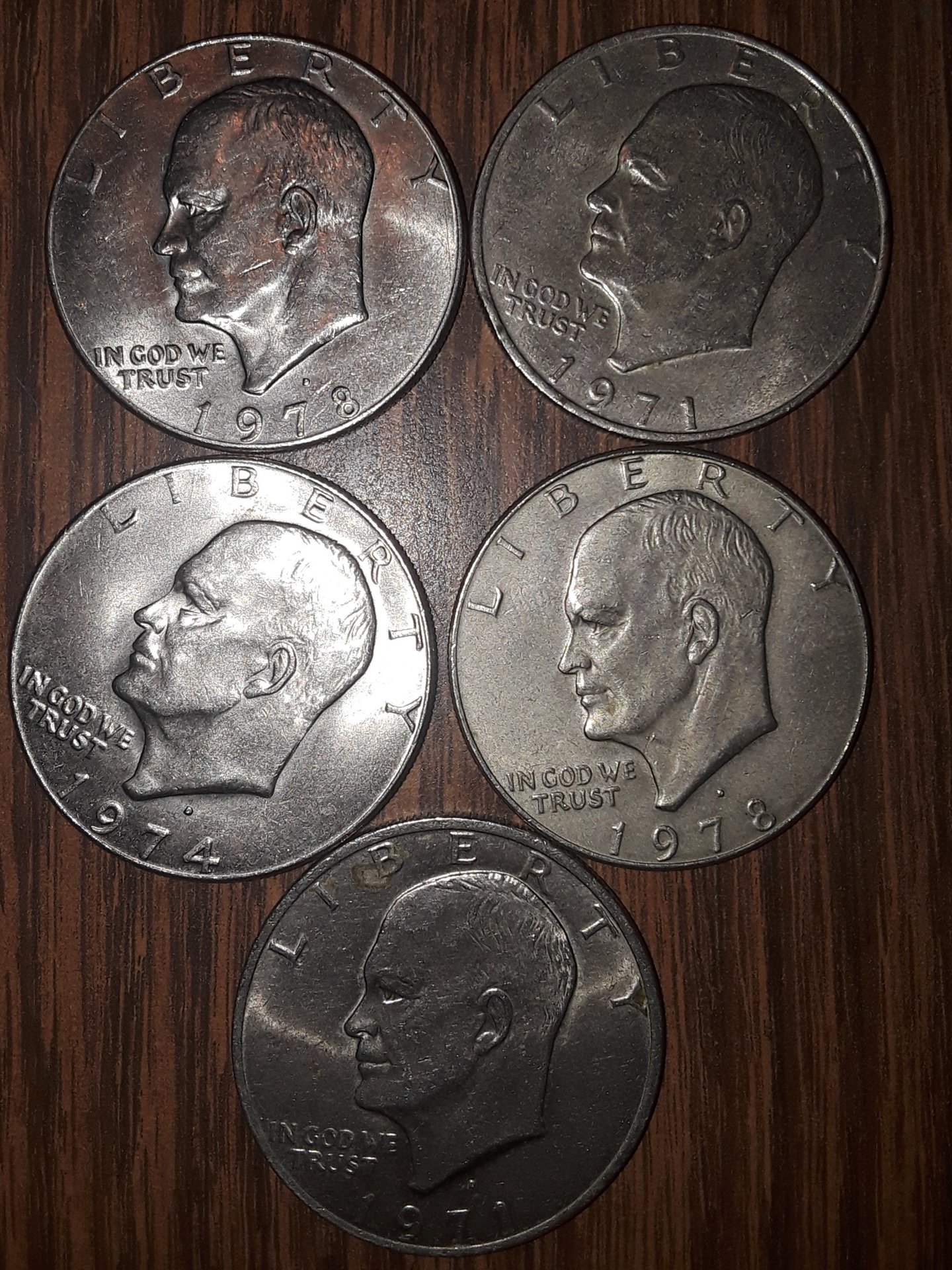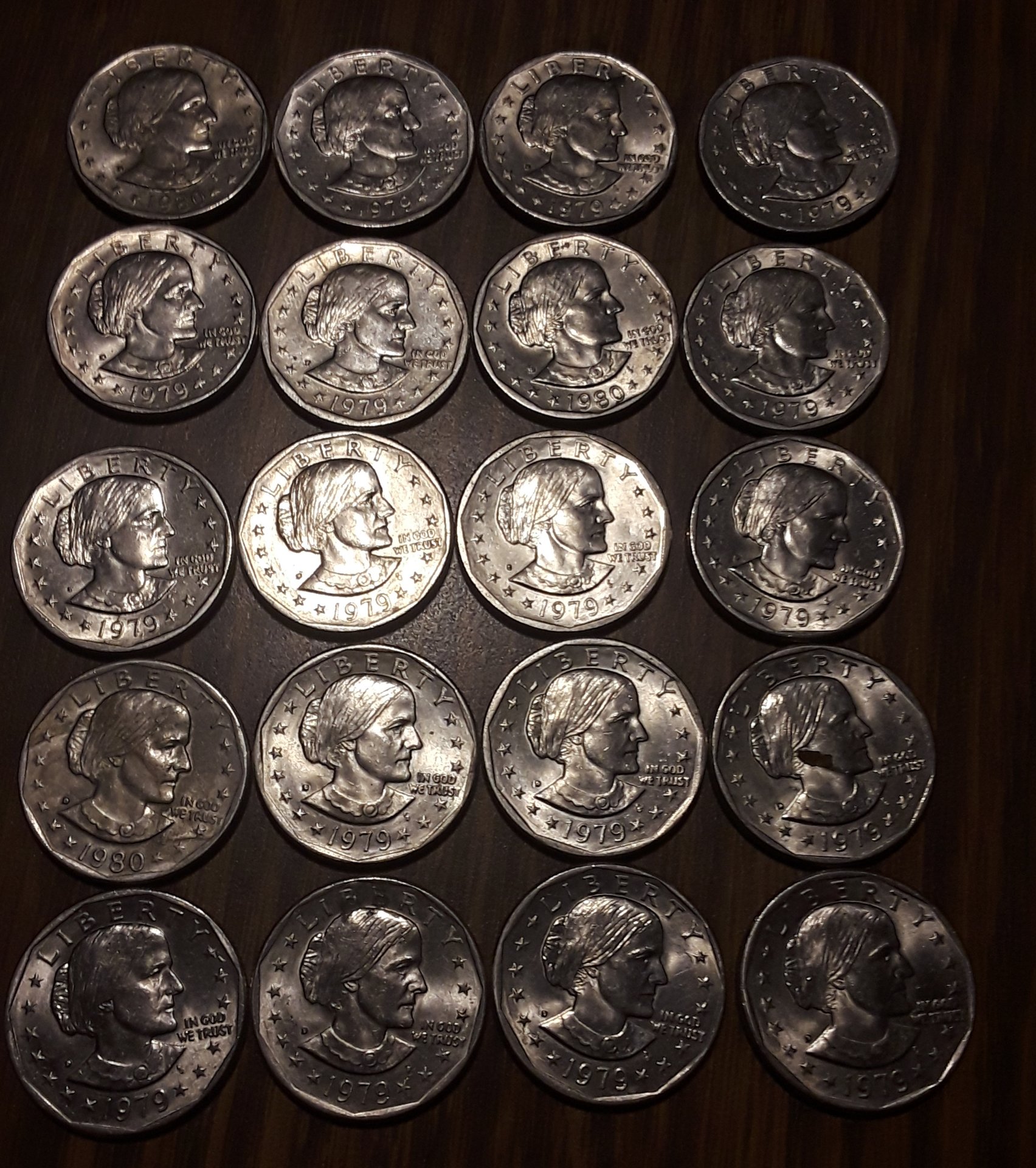 Wow what timing yesterday i was at a restaurant we always go2 and as the owner was giving me my change...she noticed i was looking closely 2my coins and asked what are you doing...i said i just like coin collecting and was just looking at the years of this change. She tells me thats cool. She says you knw i have a bag of coins customers have given me that i dnt keep in the register. Some are big and some are like quarters but say dollars....i was like really...she was like yeah im just going 2 take then 2the bank and get cash....i was like plzzz can i buy them all from you she was like Sureeee....i was so anxious 2see what she had and this is what she gave me $24.5 in Half dollars and $20 in Susan B. Anthony dollars and $5 in Eisenhower dollars....i was like Sweet Jesus lol my first PerfectTiming moment lol well...we shall have 2 see now what we got...wish me luck im a happy camper.