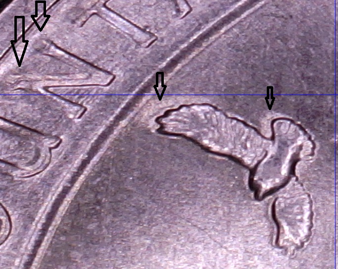 (Obv) I see doubling in his eye, ear, some lettering, especially in the "Y" of Liberty. (Rev) The Bird, some lettering, windows, trees, and fence. I finally got better quality pictures. There are quite a few but it will help with identifying it. Rachel