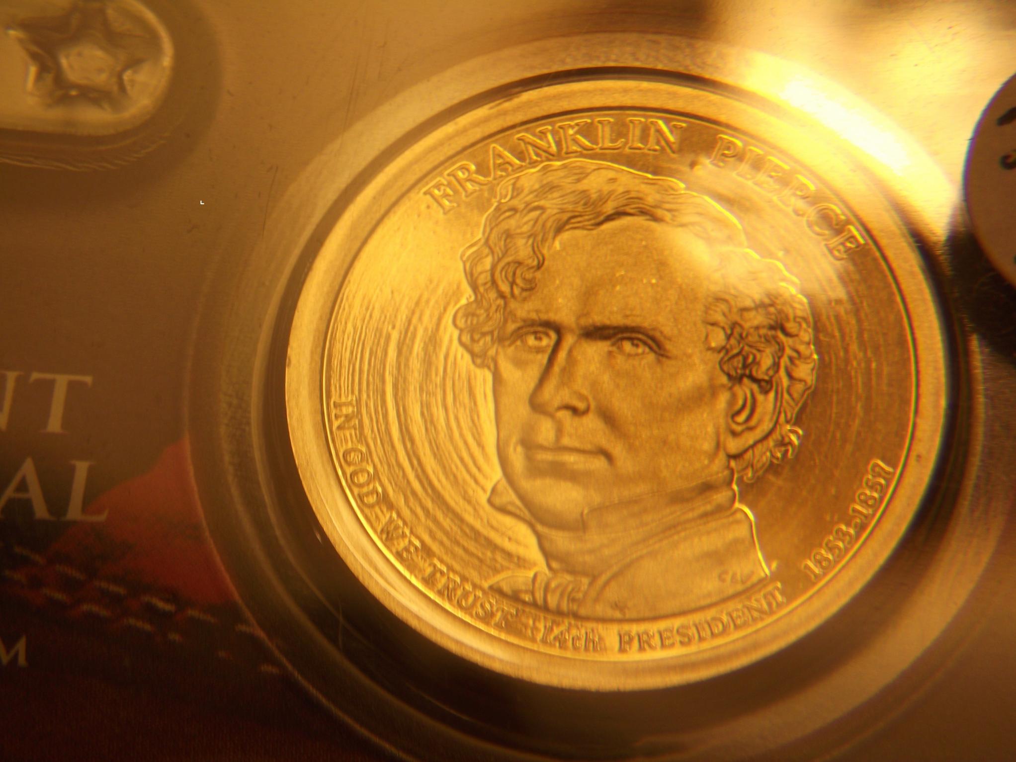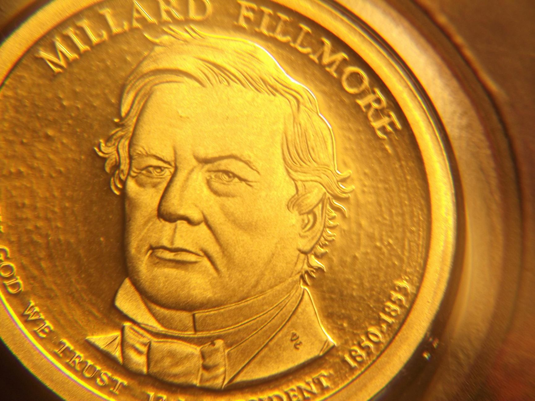 I didn't think this would be important, but here is a Fillmore dollar from the same set. Although not as dramatic, there are still these "lines" throughout the obverse, most prominant on the outer edges. Instead of being more like defined lines like on the Pierce dollar, they are more smoothed out and harder to see. I would say they are on the Buchanan dollar as well, but are even more smoothed out than the Fillmore dollar. It would be hard to capture it with my camera. Any way I don't know if this will support the lathe lines theory or strike through theory but here is the pic. Try to ignore the bubbles. They're on every one of the coins and they're ugly.