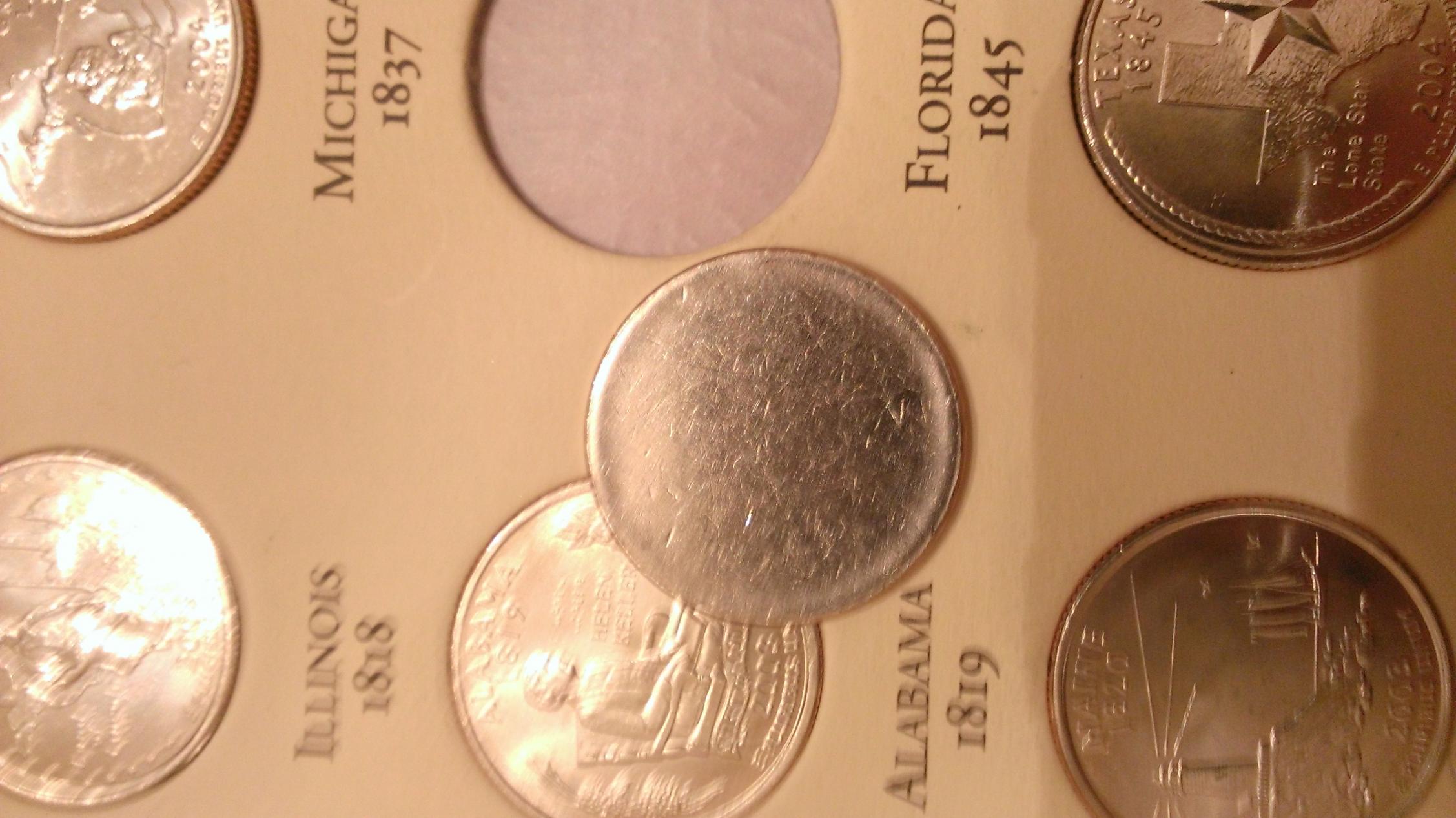 Take a look at The Florida coin. As i was placing them in their folder Florida is as far as i can tell is a planchet. Im new to the collecting but this is a nice pience of coin.... anyone have any idea what it is for sure or anything really. THANKS