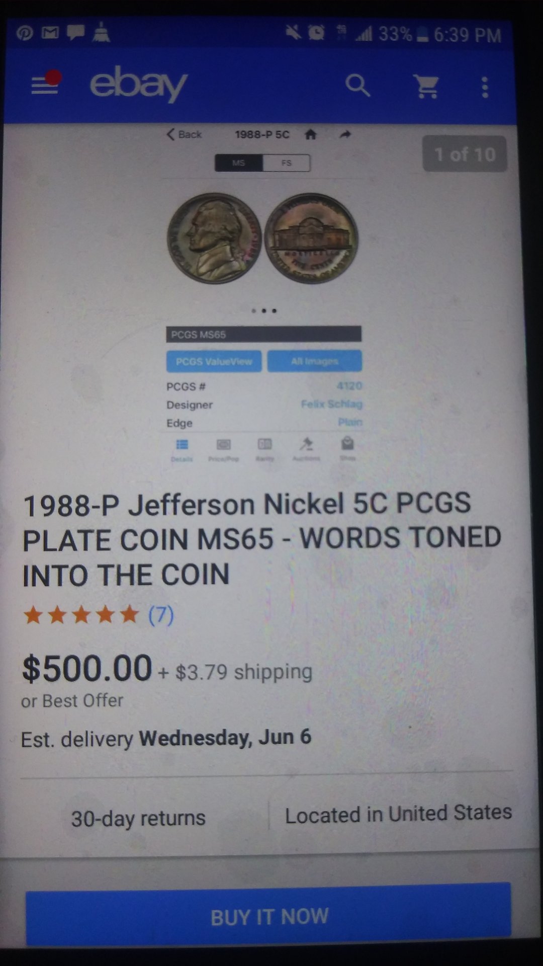 I think in this particular instance, the seller simply termed the name "Plate coin" and I think he simply means that it's not a regular nickel b/c you can see the actual lettering from the nickel folder it acquired it's toning from. That's my take on it, please if I'm wrong and you can tell me why, please do. It wouldn't hurt my feelings one bit as I'm here to learn, teach and get schooled and not necessarily in any kind of order! https://www.ebay.com/itm/1988-P-Jef...494078&hash=item33eb4fe433:g:6BEAAOSwSg5bBzpY