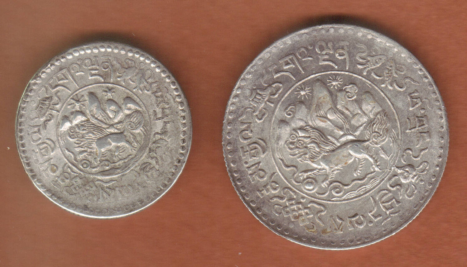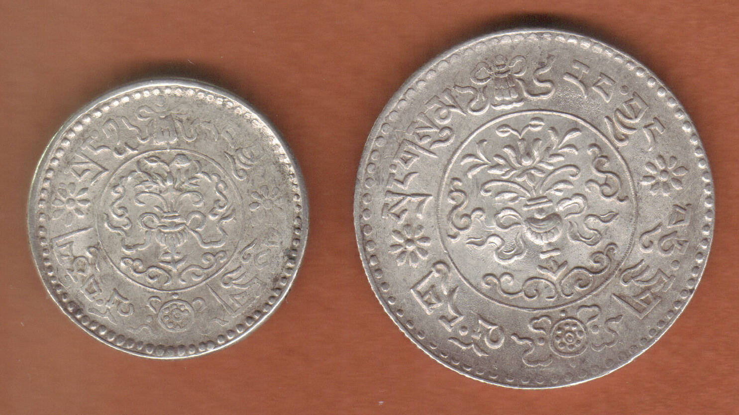 These two pieces are driving me crazy. I'll find the design of one side, but the other won't match. I'd like the date and Krause number if possible. The large coin measures 31mm, silver, reeded edge; the smaller measures 24mm, silver, reeded edge.