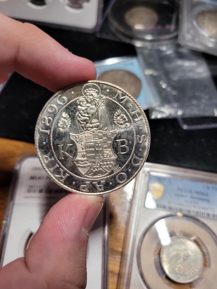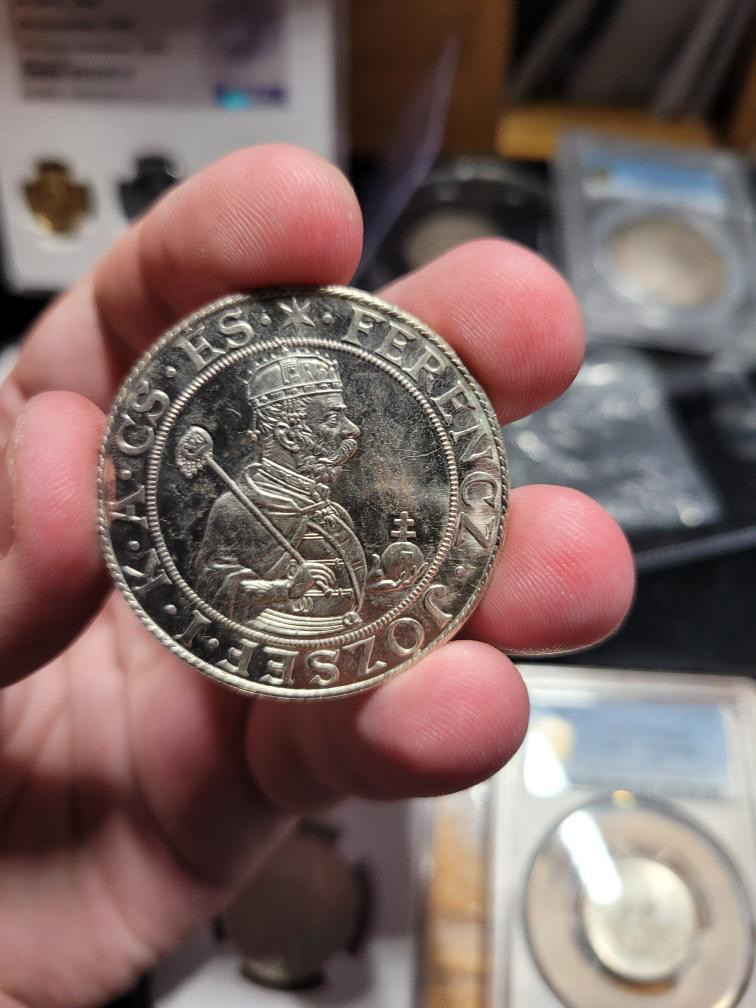 Hi trying to ID the denomination of this Restrike. I believe it’s a 1.25 Thaler minted in the 1930's but I'm not sure. According to NGC the Thaler Restrike weighs 29.12 Grams and this one weighs 36/37 grams (my scale sucks). Can't find a weight on the 1.25 Thaler Restrikes. From pictures of both denominations certified by NGC they look identical to me. Below is a link to a Heritage Auction for a 1.25 Thaler that NGC calls a modern Restrike but Heritage says is from the 1930's. Any help would be appreciated thank you.