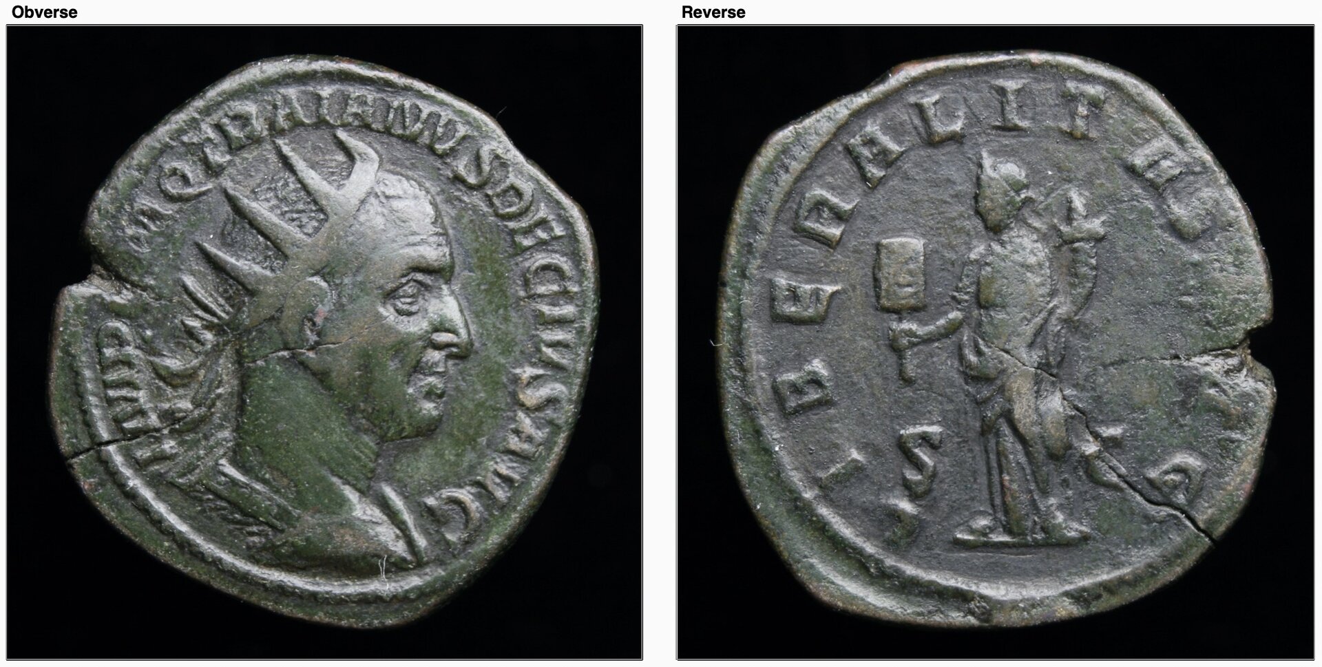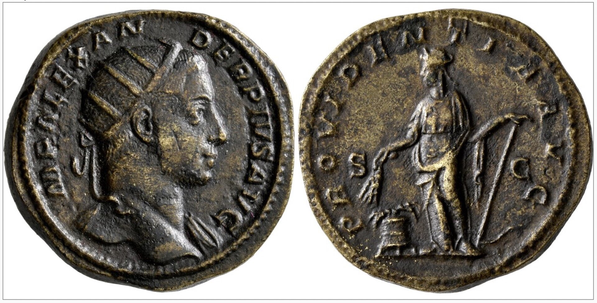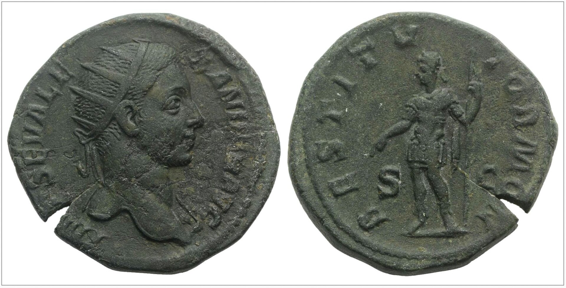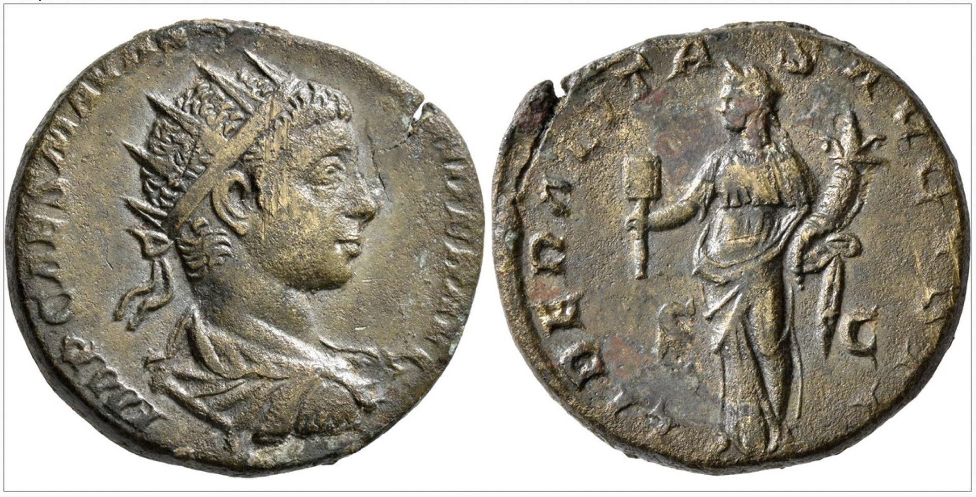 The central government stopped issuing the traditional bronze coinage (i.e. Sestertii, Dupondii and Asses identified by "S C" on the reverse) in 264.