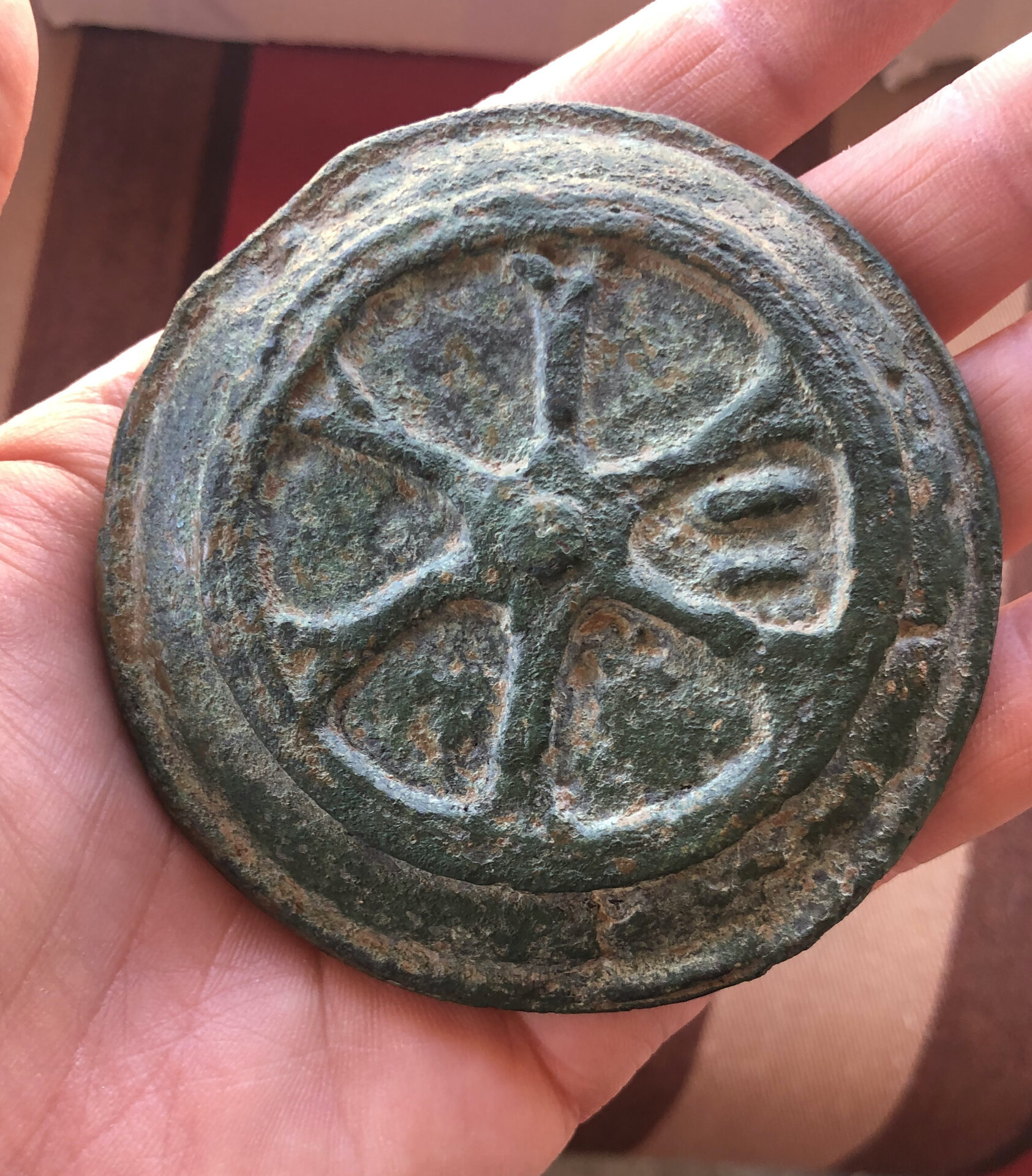 Here's a dupondius you won't see very often. Very rare with only a handful in private hands. 574 grams!! Dupondius about 280, Æ (574.1g, 81mm) Helmeted head of Roma r.; behind, mark of value II set horizontally. / Six-spoked wheel; between two spokes, II. Vecchi 65, TV 30, Sydenham 58, Crawford 24/2, HNI 325. Haeberlin p. 58 plates 23-24 (14 examples) Provenance: Bank Leu Auction 2, April 25, 1972 Lot 323