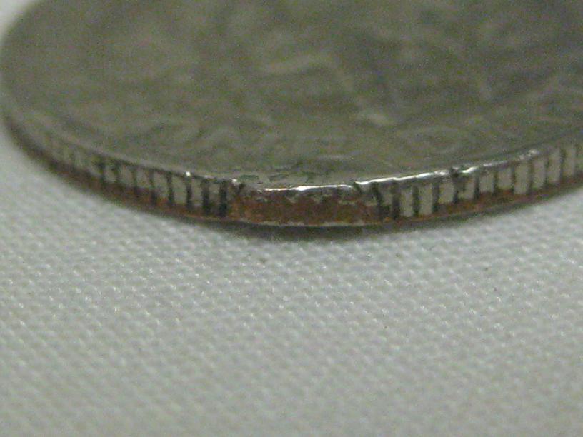Ok, I am pretty sure this is PMD of some sort. But I am gonna ask for confirmation here, and also ask what could have done this? There are NO other marks on the coin anywhere, no plier marks, no excessive scratches, not bent, no gouges, nothing but this. And I really don't wanna hear the words "hammer job", because that's simply incorrect... lol. I know what those look like, and this ain't that It's something different, new to me, and apparently more involved/sophisticated. I am pretty sure I have identified the letters you can see on it as the "GO" and "RU" from the motto on the front of a quarter... check this out, front/back/edge: