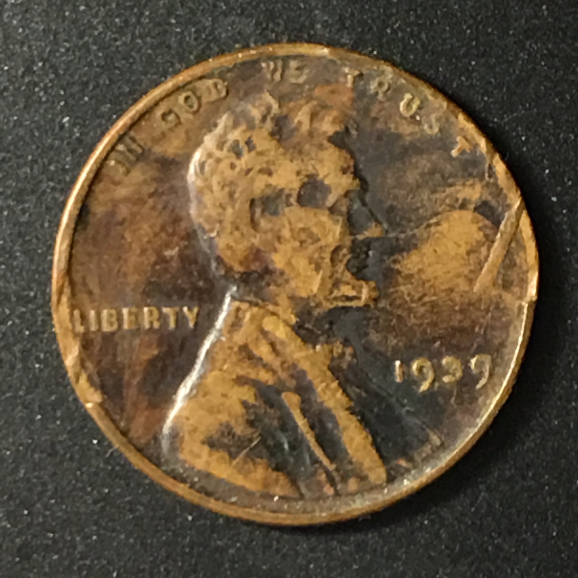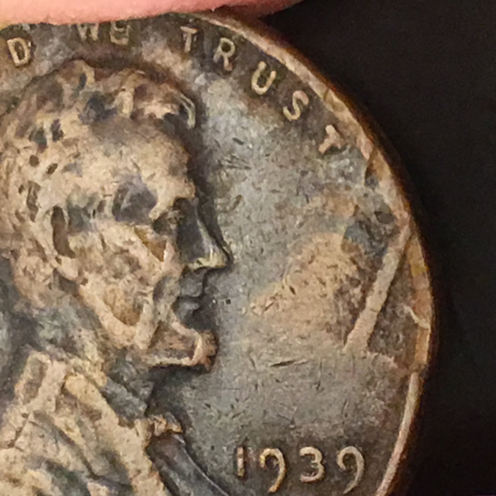 Part of the rim was knocked loose and then the whole coin was worn down. Sadly, it's just all damage, but like you said , you like it, so keep it, add it to your "oddities" box and play Show and Tell with your friends.