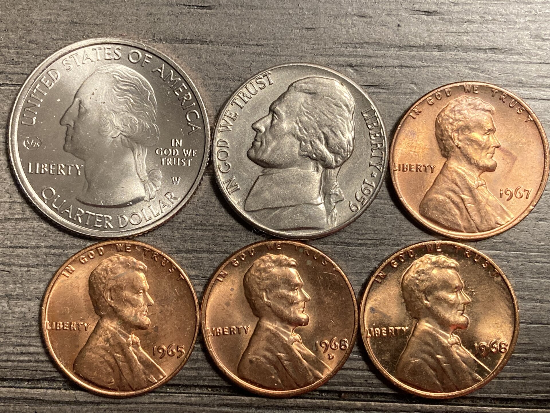 98 cents gonna comb through it, but does not look promising, lol... well, so far a 1980 unc,,, lincoln memorial cent 2011-p unc roos. dime with die cracks and die break in hair, and a possible 65 roos clash (which is funny today one i won at auction came in today as well, paid 20.00, lol and this one for free, though the one i bought was mid grade unc, and this one is like vf at best..but there is a clash by eye on top of nose area, posting a pic of that one!! 271238004_462309105429300_5937152022312270623_n.jpg 270309232_1235026927018803_4485487235311883336_n.jpg 271214620_251307483783367_4607507408747711790_n.jpg 271296761_327720232555250_792310873216626222_n.jpg