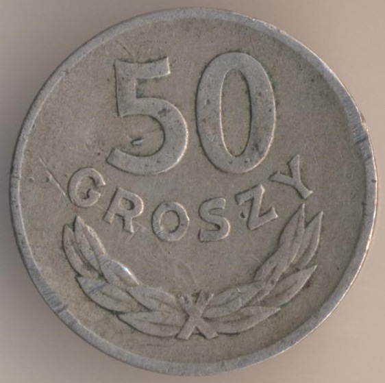 50 groszy 1949, copper-nickel, weight - 5 g., size - 23 mm, mintage - 109000000 pcs. Kremnica Mint (Czechoslovakia) Single release only.