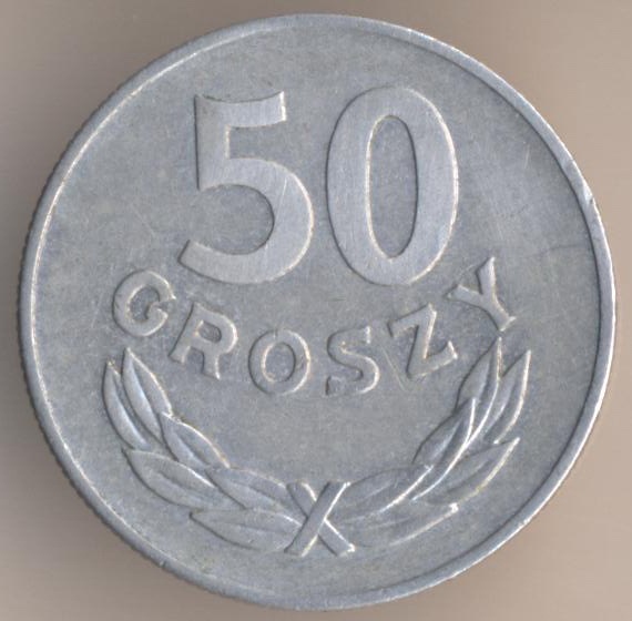 50 groszy 1976, aluminium, weight - 1,6 g., size - 23 mm, thickness - 1,7 mm, mintage - 25000000 pcs. Kremnica Mint (Czechoslovakia). Coins of this type were released at 1957, 1965, 1967-68, 1970-78 and 1982-87. Demonetized at January 1 1995.