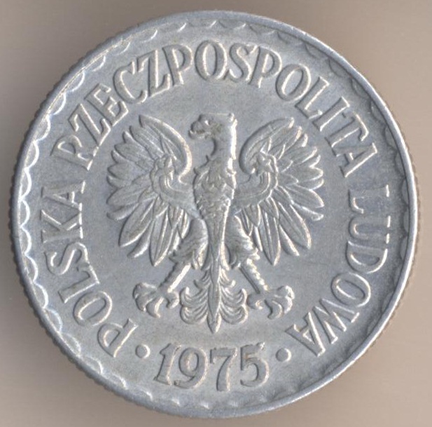 1 zloty 1975, aluminium, weight - 2,1 g., size - 25 mm, thickness - 2 mm, mintage - 22000000 pcs. Kremnica Mint (Czechoslovakia). Engravers: Anton Peter, Jozef Koren and Anton Ham. Coins of this type were released at 1957, 1965-78 and 1980-1988. Demonetized at January 1 1995.