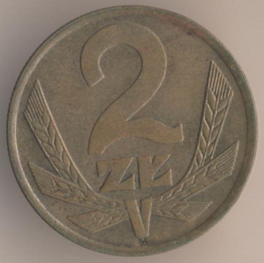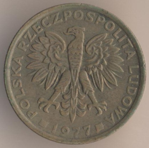 2 zlote 1977, brass, weight - 3 g., size - 21 mm, thickness - 1,1 mm, mintage - 50000000 pcs. Leningrad Mint (USSR). Coins of this type were released at 1975-88.