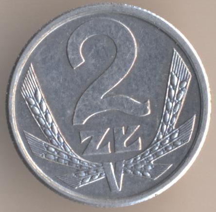 2 zlote 1989, aluminium, weight - 0,71 g., size - 18 mm, thickness - 1,36 mm, mintage - 91494000 pcs. Warsaw Mint. Coins of this type were released at 1989 and 1990.