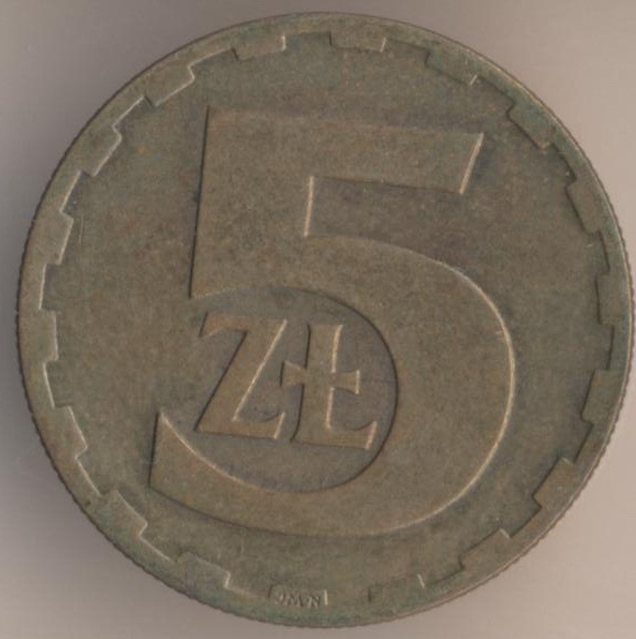 5 zlotych 1977, brass, weight - 5 g., size - 24 mm, thickness - 1,6 mm, mintage - 25000000 pcs. Leningrad Mint (USSR). Coins of this type were released at 1975-88.
