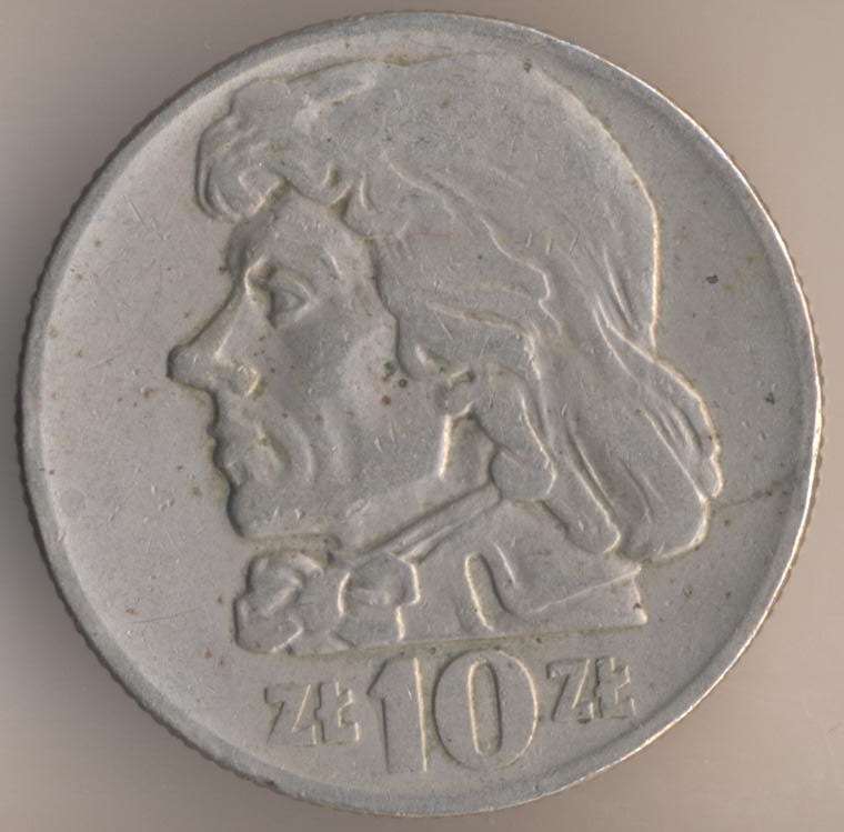10 zlotych 1959, copper-nickel, weight - 12,9 g., size - 31 mm, thickness - 2,2 mm, mintage: 13107000 pcs. "Tadeusz Kosciuszko". Coins of this type were released at 1959, 1969 and 1966.