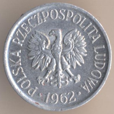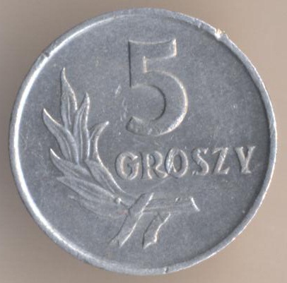 5 groszy 1962, aluminium, weight - 0,6 g., size - 16 mm, thickness - 1,5 mm, mintage - 90257005 pcs. Coins of this type were released at 1958-63, 1965,1967-68 and 1970-72. Demonetized at January 1 1995.