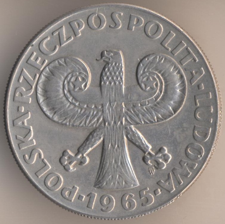 10 zlotych 1965, copper-nickel, weight - 12,9 g., size - 31 mm, thickness - 2 mm, mintage: 3492000 pcs. "700th Anniversary of Warsaw". Engraver: W. Kowalic. Warsaw Mint. Single release only.