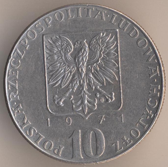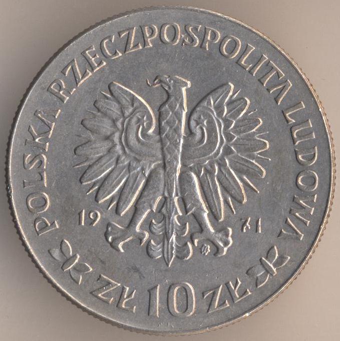 10 zlotych 1971, copper-nickel, weight - 9,5 g., size - 28 mm, thickness - 1,9 mm, mintage: 2000000 pcs. "50th Anniversary - Battle of Upper Silesia". Engraver: Waclaw Kowalik. Warsaw Mint. Single release only.