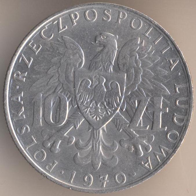 10 zlotych 1970, copper-nickel, weight - 9,5 g., size - 28 mm, thickness - 2 mm, mintage: 2000000 pcs. "25th Anniversary - Provincial Annexations". Engraver: Jerzy Jarnuszkiewics. Warsaw Mint. Single release only.