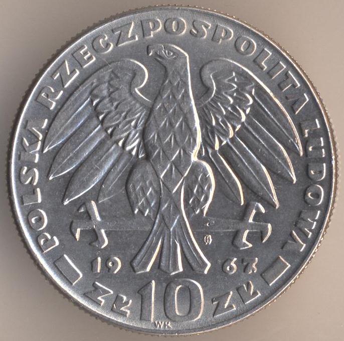 10 zlotych 1964, copper-nickel, weight - 13 g., size - 31 mm, thickness - 2,1 mm, mintage: 2612000 pcs. "600th Anniversary of Jagiello University". Single release only.