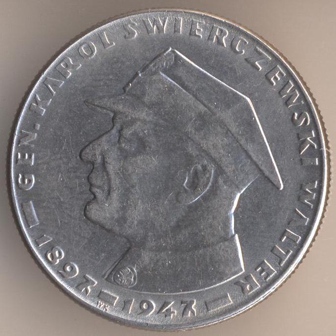 10 zlotych 1967, copper-nickel, weight - 9,5 g., size - 28 mm, thickness - 1,96 mm, mintage: 2000000 pcs. "20th Anniversary - Death of General Karol Swierczewski". Warsaw Mint. Single release only.