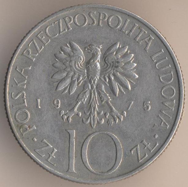 10 zlotych 1975, copper-nickel, weight - 7,7 g., size - 25 mm, thickness - 2 mm, mintage: 35000000 pcs. "Adam Mickiewicz". Engraver: Anna Jarnuszkiewics. Warsaw Mint. Coins of this type were released at 1975 & 1976.