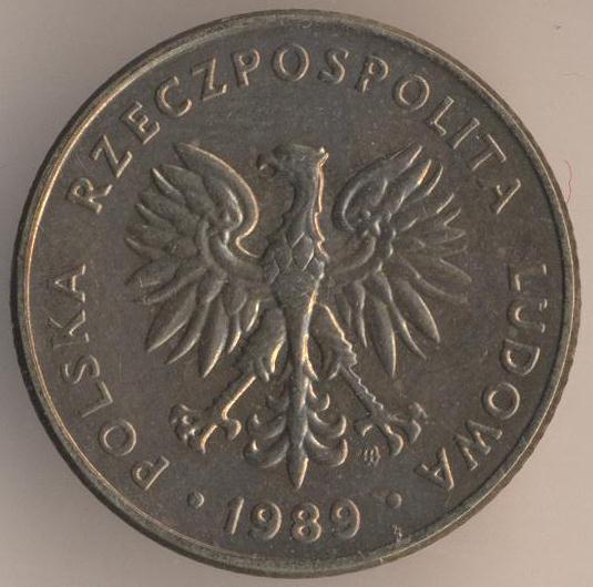 10 zlotych 1989, brass, weight - 4,27 g., size - 21,8 mm, thickness - 1,73 mm, mintage - 80800000 pcs. Warsaw Mint. Coins of this type were released at 1989 & 1990. One of the last Polish socialistic coins.