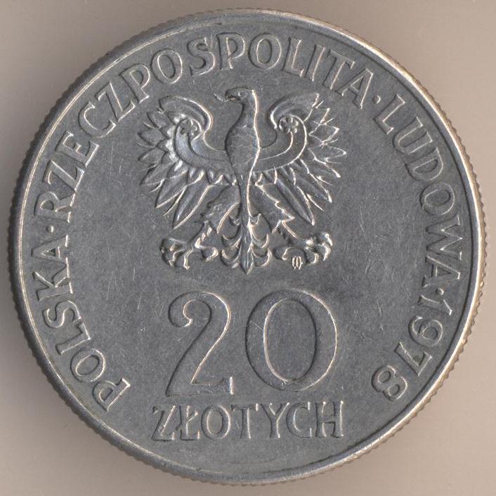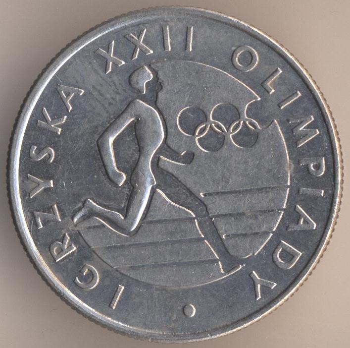 20 zlotych 1980, copper-nickel, weight - 10,15 g., size - 28,8 mm, thickness - 2,05 mm, mintage - 2012000 pcs. "1980 Olympics". Warsaw Mint. Single release only.