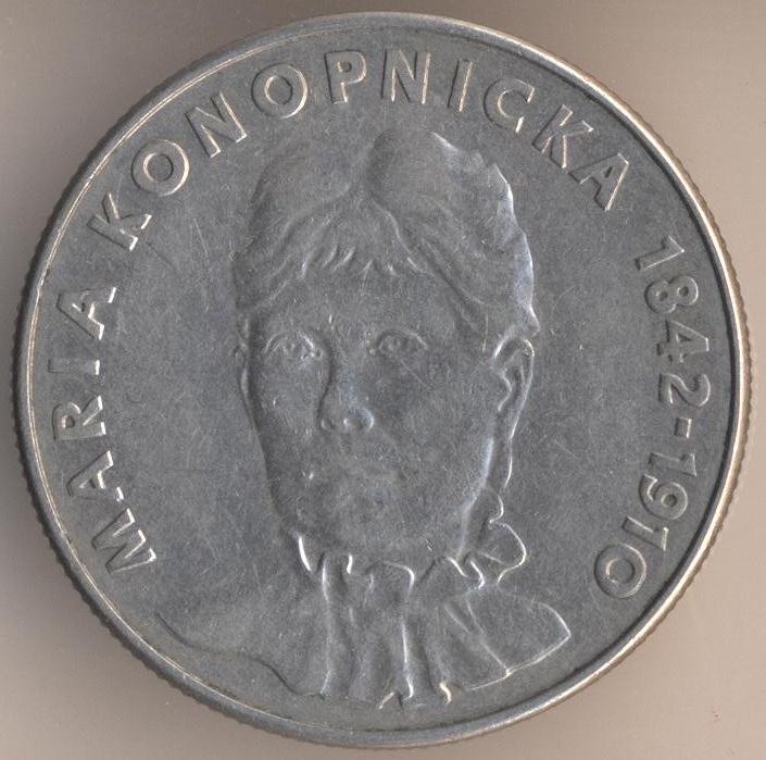 20 zlotych 1978, copper-nickel, weight - 10,1 g., size - 28,8 mm, thickness - 2,1 mm, mintage - 2010000 pcs. "Maria Konopnicka". Warsaw Mint. Single release only.