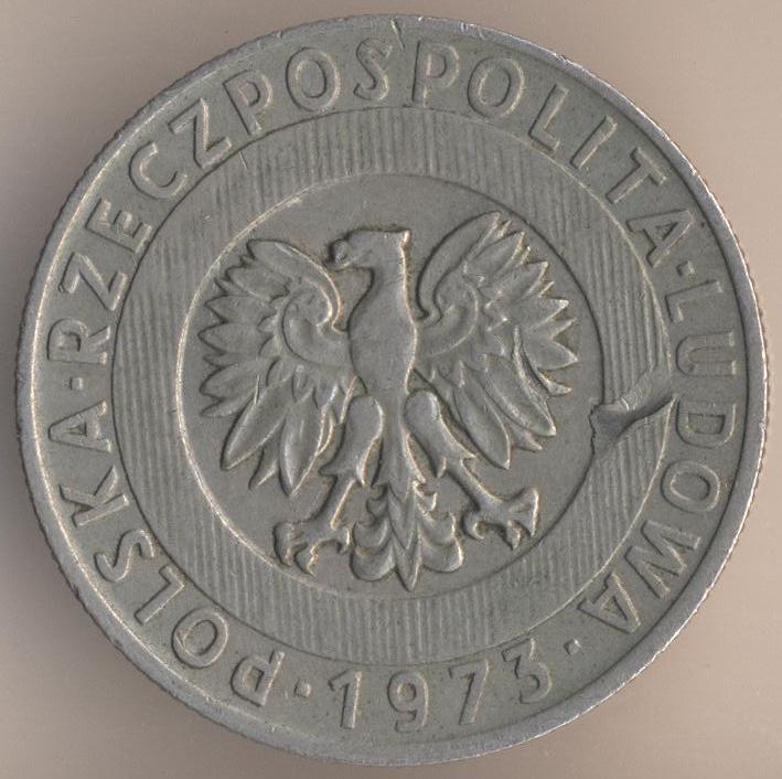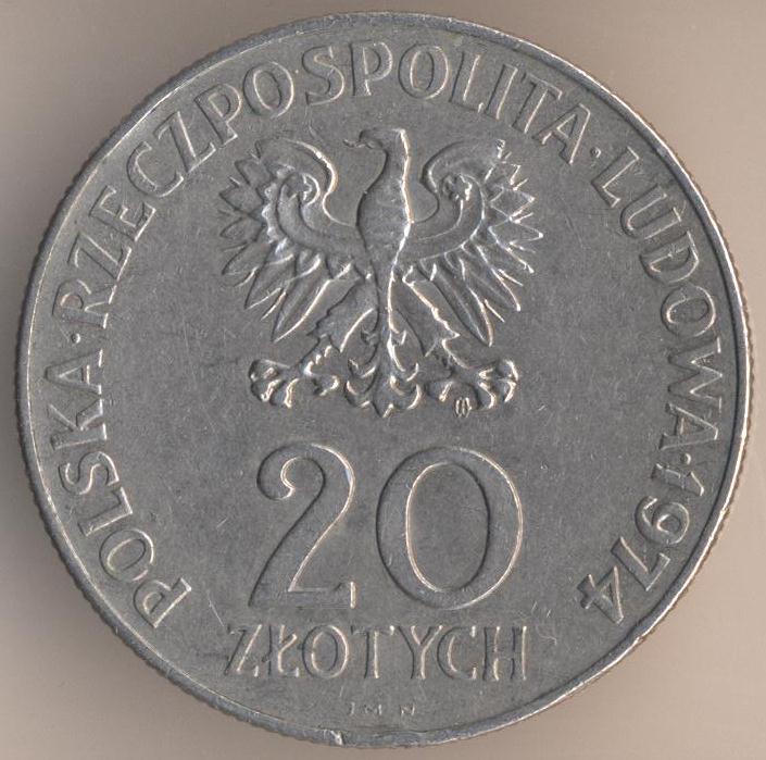 20 zlotych 1973, copper-nickel, weight - 10,15 g., size - 29 mm, thickness - 1,95 mm, mintage - 25000000 pcs. Warsaw Mint. Coins of this type were released at 1973-74 and 1976.