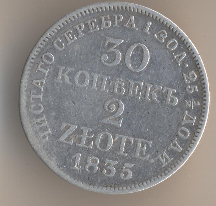 Here's some example of coins struck under the "Russo-Polish" era. You should expect to see the denomination zlot or grosy, depending on the plural form - you get my idea.