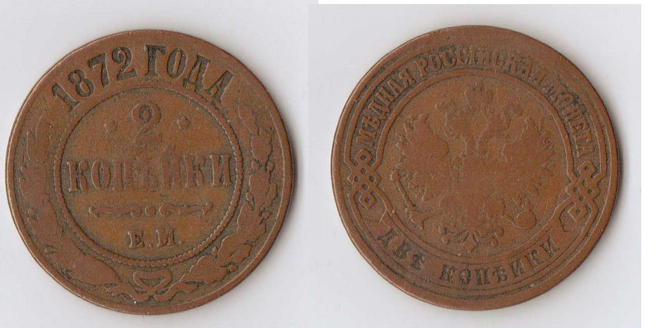 Russian 2 Kopeks from the reign of Alexander II. From the Ekaterinburg mint. Nice rims for a coin that is so worn, also nice even color.