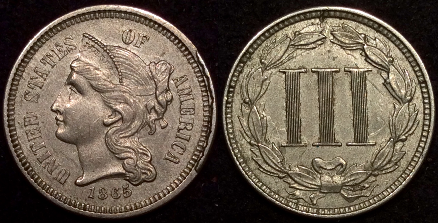 I once purchases an 1865 3 cent piece in XF condition (looked a lot like yours.) My girlfriend at the time was driving me around that day. I asked her to hold the coin in her purse (better than my pocket). The coin was inside a plastic flip, so I figured it would be safe in her purse during the short ride home. We approached a toll and she dug into her purse, grabbed some coins, and tossed them in. Got home and there was no 3 cent piece. When I asked her what happened, she told me she saw what looked like a 10 cent piece and needed the change, totally didn't put two and two together that it was the coin I'd just asked her to hold for me, took it out of the flip and threw it in the toll booth along with the other coins. Girlfriend didn't last long after that. To this day I still miss her a lot (the coin).