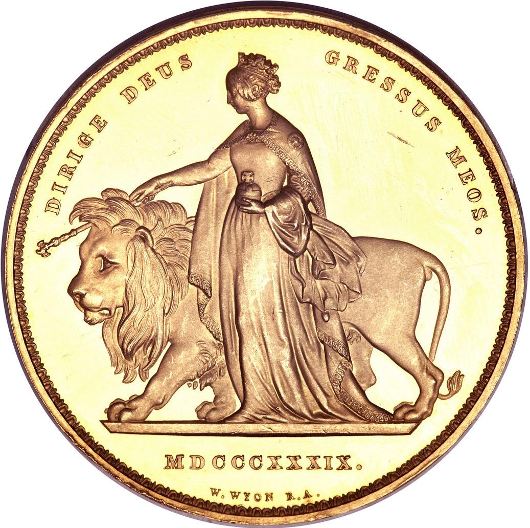 I'm not really into world coins but I think that the 1839 5 Pound Victoria is possible one of the most beautiful coins there is