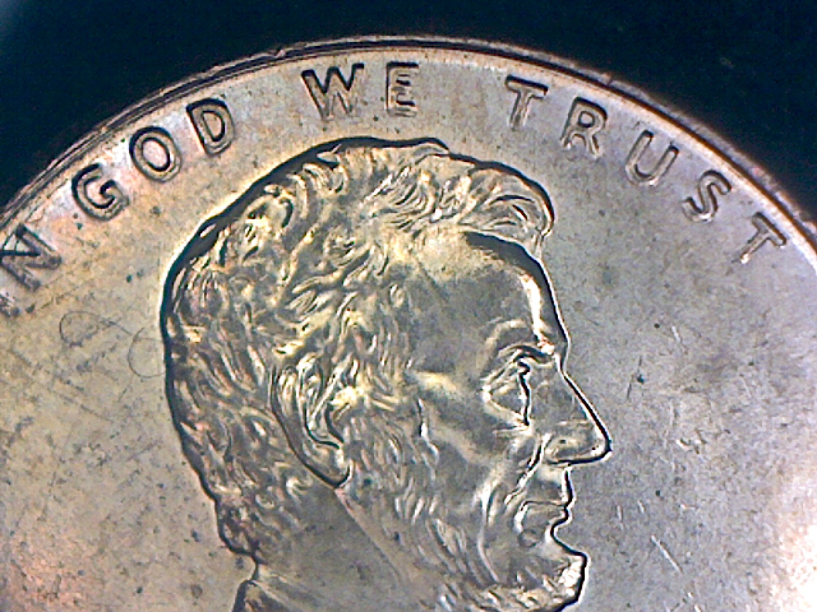 Yes I have one. Depending on how I turn it it can change the whole look of the coin. I took a ring or washer I cut out of translucent plastic then wrapped celophane tape around it and it fits snugly inside. It has a hole about the size of the lens. It blocks a lot of the LED's intensity. It's good for shiny coins but it is still hard to see what is reflection and what is actual doubling, or, notching. On this coin GOD, and wE, trUSt are doubled. It's very prominent. I'll take more close in shots today.