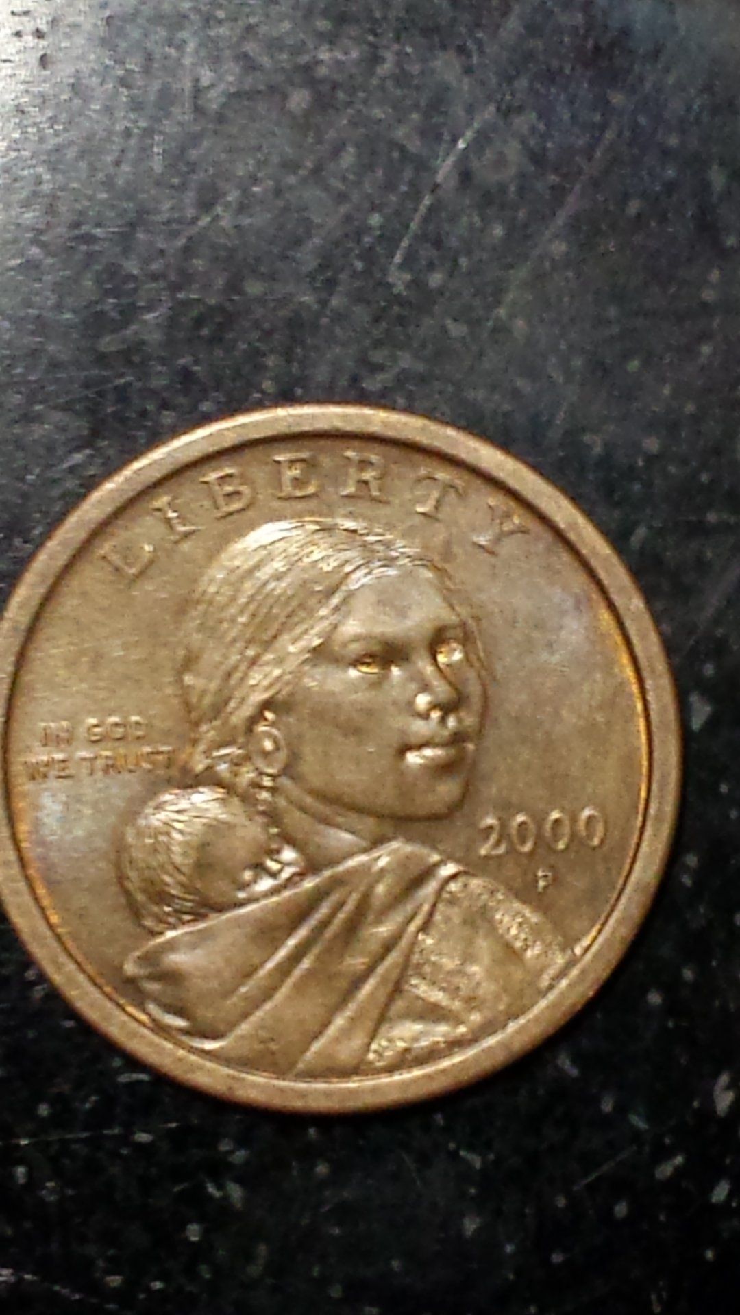 It would have been worse if the coin was still in the Cheerios packaging. Then, it is unlikely that a photo like the OP's could reveal the polishing along her shoulder. Chris