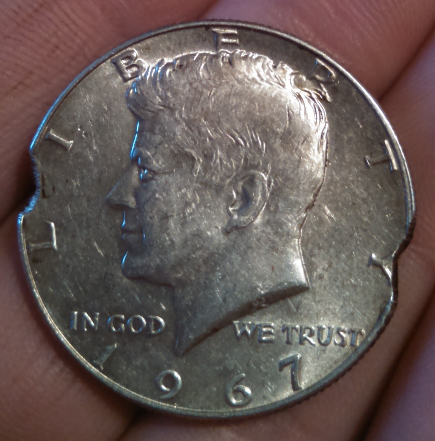 Got this half dollar a few months ago, I was curious if it was a clipped coin or just pmd. Camera had trouble focusing inside the "clipped" area, so I was only able to get a close up of one side. Thanks for any help guys