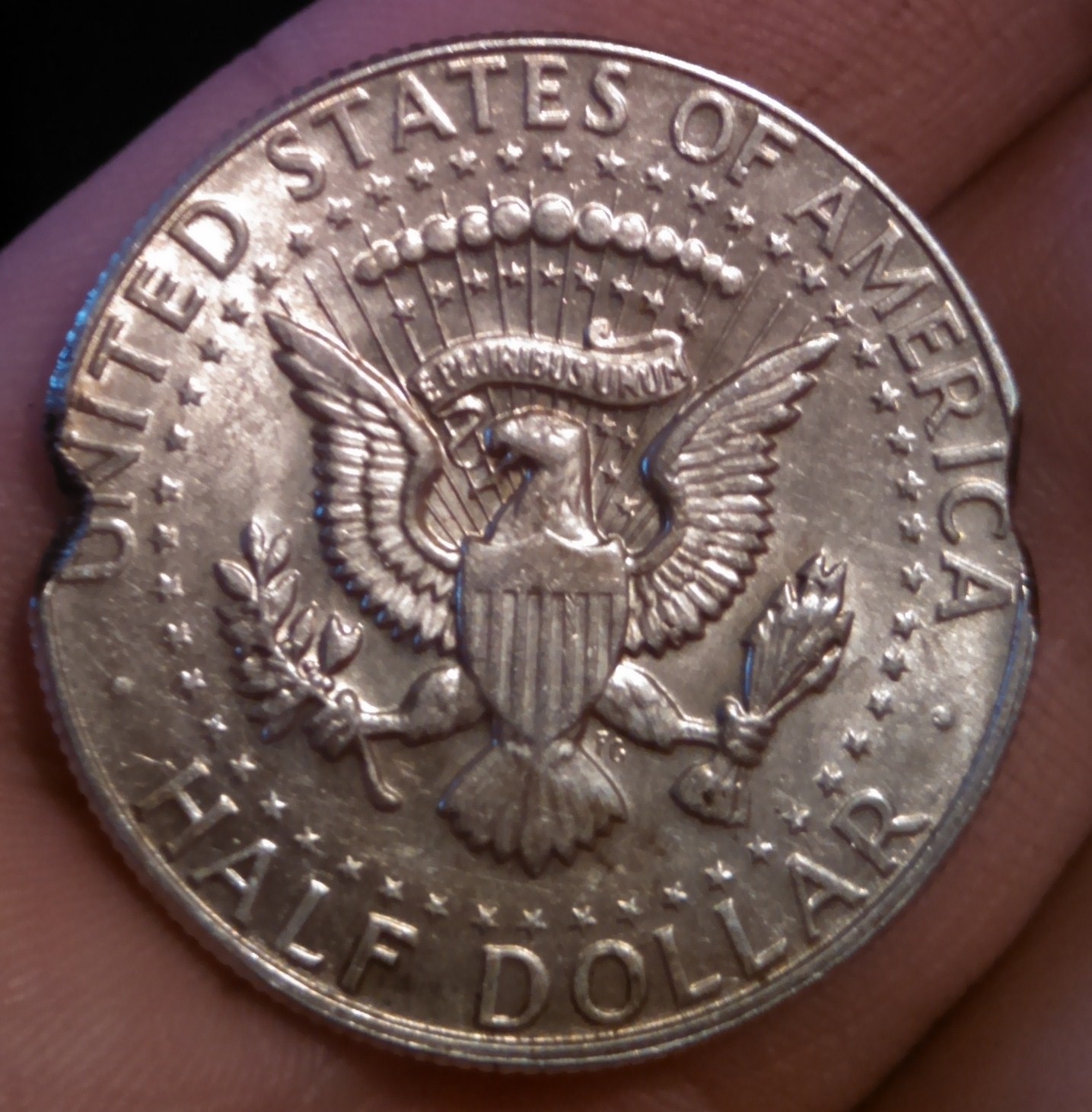 Yep , PMD probably by someone with too much time on their hands . Chris is right , the clip would be the same as the coin it's on . Meaning if you took another Kennedy it would fit neatly into the clip . It would also have the Blakesly effect on the opposite side .