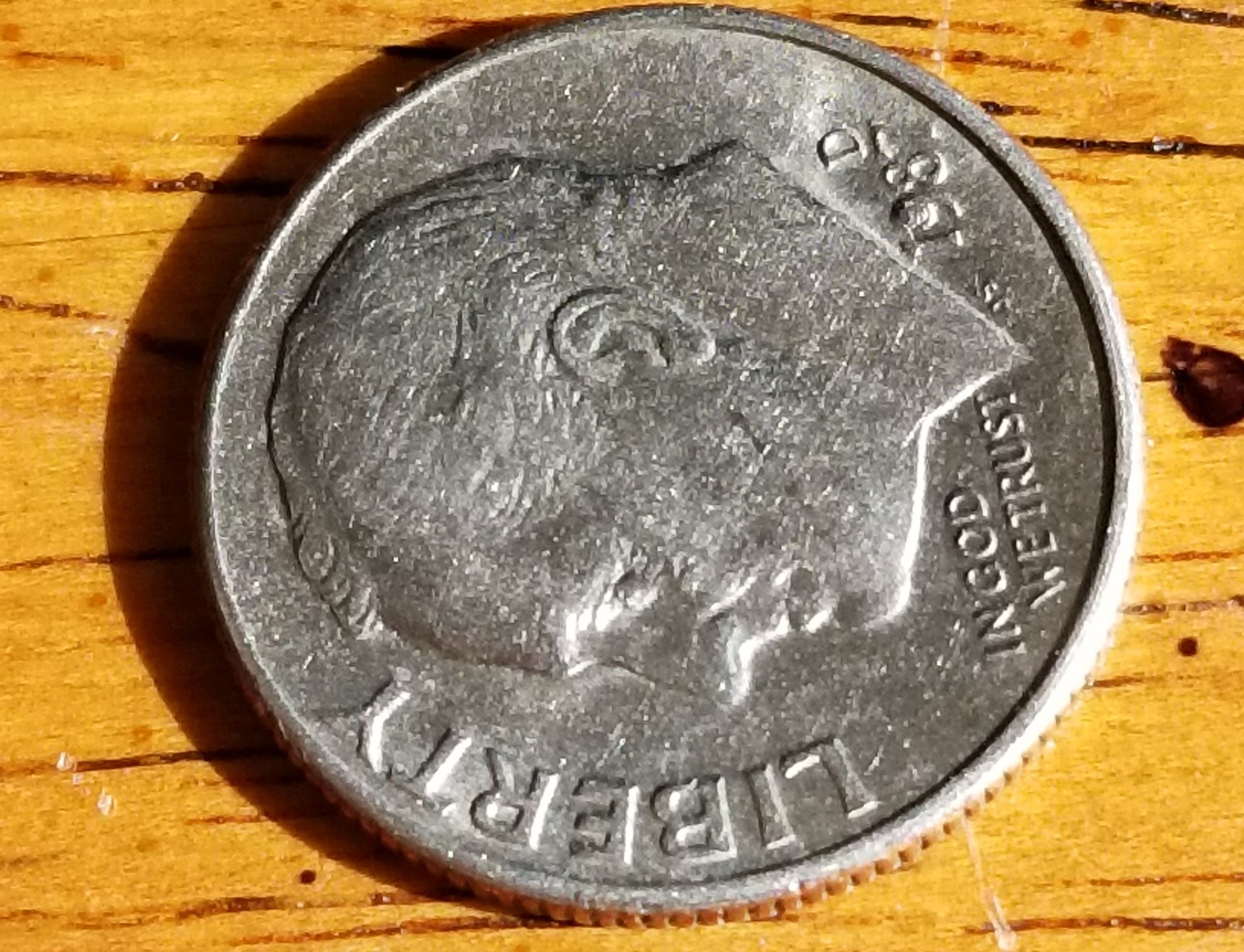 I was going through a few dimes today, and this one stood out because the (9) in the date appears to be filled with something. Possible IDB??