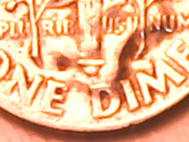 I hate that the pictures just dont project what i actually see. I realize this dime is circulated and beat up....im not referring to the obvious damage from the coin going through probably 100 thousand plus hands. There are three pictures of each side and what i see to be the error i zoom in on...thoughts please?