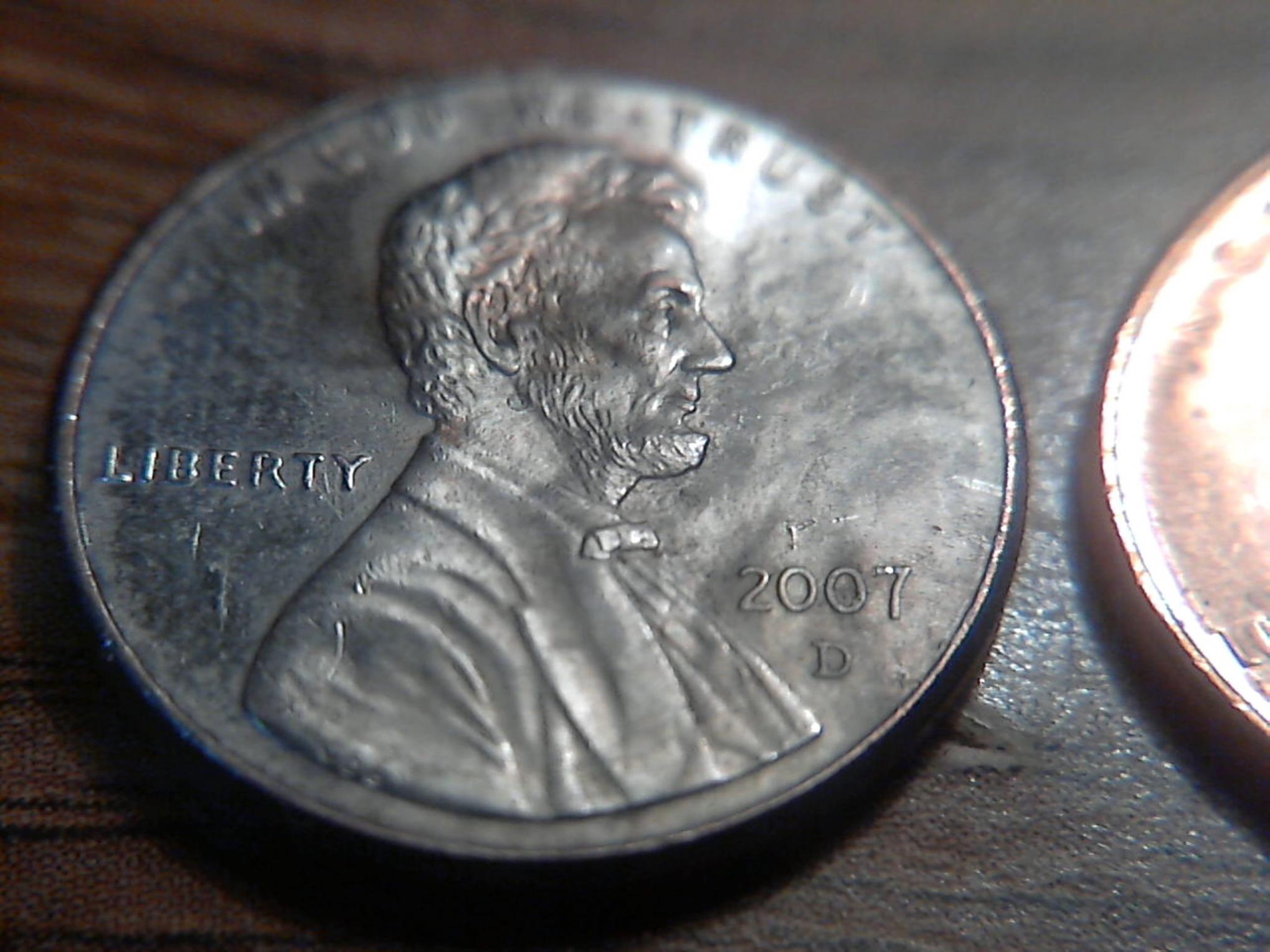 The nickle has a s over s mintmark the one penny has an extra edge of some sort other penny looks like it was possibly never copper coated.