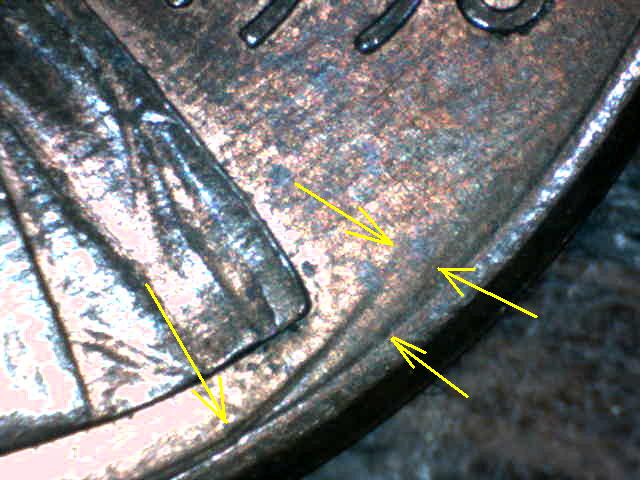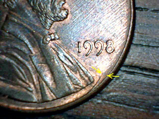 I found this 1998-P Lincoln with, what appears to be, another rim protruding from the main rim right under the date. I can't find any other clash marks, but the possible misalignment has me all confused. I don't really know where to look for more. I have scoped this thing over and over. I am guessing the other side of the rim would leave somewhere around god or we but I could be way off. I have to admit I am no JCUVE!